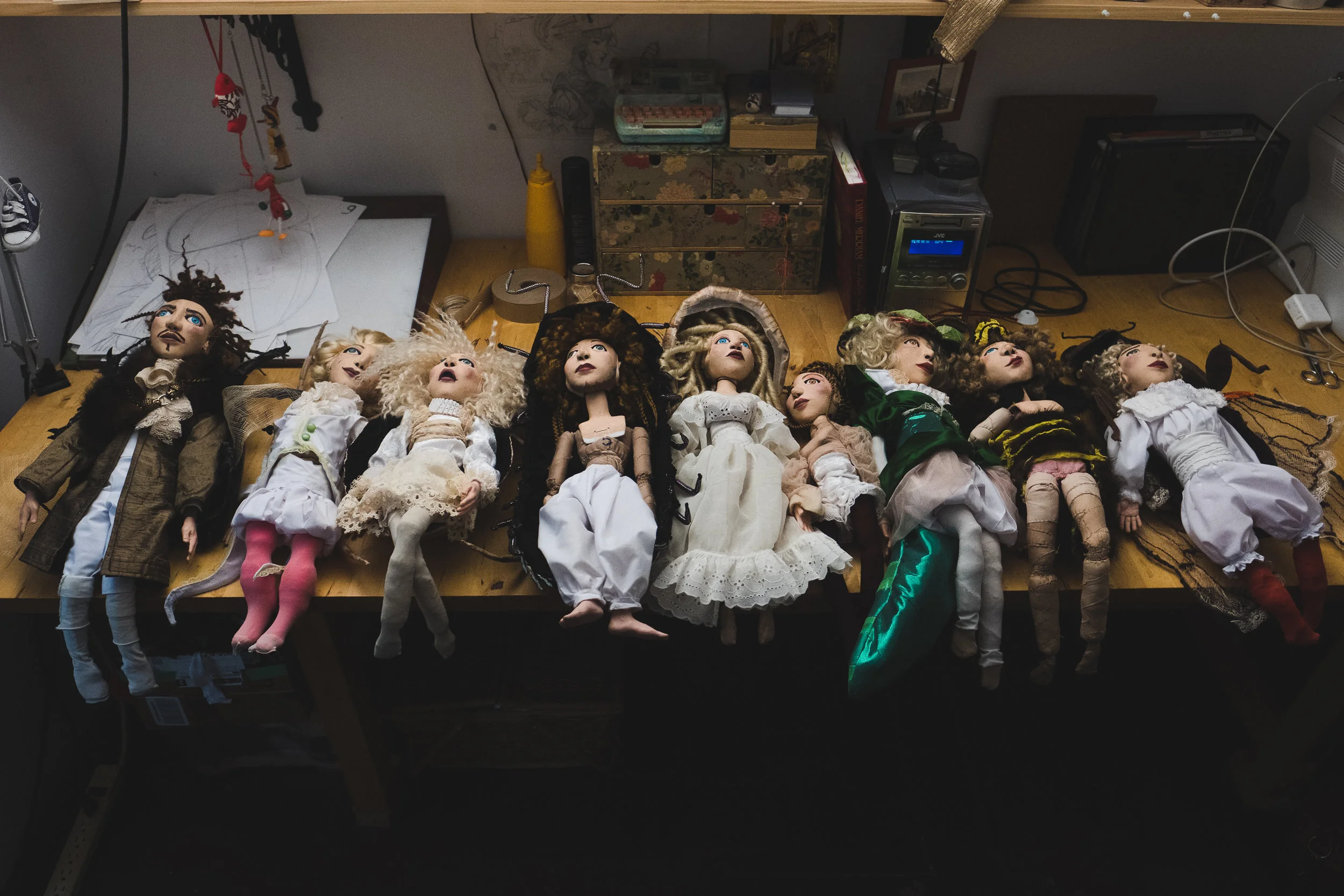 Each puppet is represented by a different insect and personifies a human personality trait—exuberant, fearful, maternal, proud, withdraw, etc. When I met up with her, she was working on the puppet wearing the shell of the empress cicada (Pomponia imperatoria), which she had borrowed from the insectarium as a reference. I love the detail on the wings.